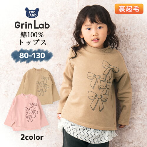 子供服 トップス 長袖 デザイン リボン プリント 裏起毛 トレーナー ( 80-130cm )【GrinLab】▽ 女の子 子供服 キッズ ベビー 80cm 90cm 95cm 100cm 110cm 120cm 130cm▽ ポイント消化