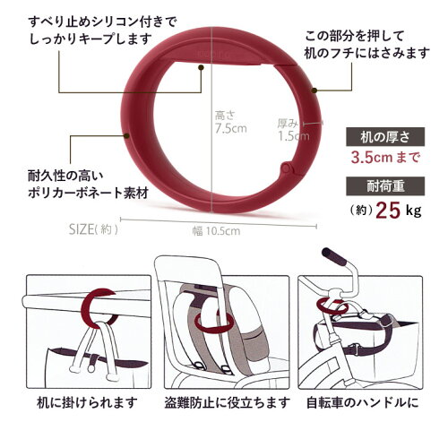 キーワード バッグ フック バッグハンガー 机 デスク テーブル ハンガー 防犯 盗難防止 リング 連結 自転車 ベビーカー カバン掛け 荷物かけ おしゃれ ボビーノ 91559 91560 91561 91562 202003-01