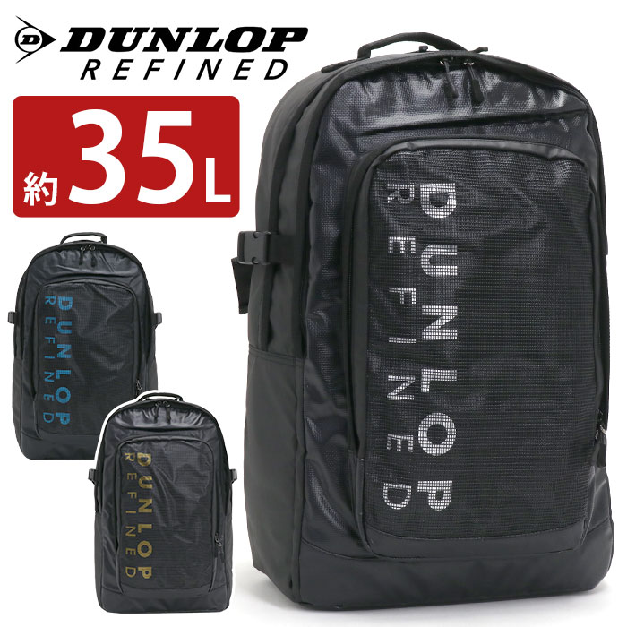 ダンロップ リファインド リュック DUNLOP REFINED 2022 春夏 新作 大容量 リュックサック バックパック デイパック メンズ レディース 男女兼用 学生 大人 通勤 通学 カバン バッグ 黒リュック シンプル カジュアル スポーティー ロゴ ブラック A4 B4 35L 丈夫 2DR3591DP