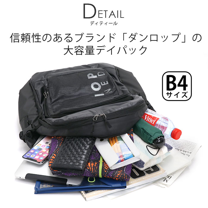 商品名DUNLOP REFINED ダンロップ リファインド 多機能バッグ 黒バッグ 人気ブランド 人気バッグ 人気の 人気な 流行の 便利な シンプルな カジュアルな おしゃれな デイリーユース デイリー使い タウン タウンユース 普段使い 街 散歩用 旅行用 お出かけ用 学校用 トラベル ジム スポーツ 合宿 週末 遊び 仕事 主婦 OL 10代 20代 30代 男 女 男子 女子 女の子 男の子 レディース用 メンズ用 レディースバッグ メンズバッグ レディース用バッグ メンズ用バッグ ギフト プレゼント お祝い ロゴ入り ナチュラル 大人気 ファッション トレンド A4サイズ A4ノート A4ファイル A4対応 A4収納 B4サイズ B4ノート B4ファイル B4対応 B4収納 収納力 通学かばん 通学用かばん 通勤バッグ 通勤用バッグ 通学バッグ 通学用バッグ 通勤リュック 通学リュック 通勤用リュック 通学用リュック 通勤用リュックサック 通学用リュックサック 学校用リュック 学校用リュックサック 学校用バッグ 仕事用バッグ 仕事用リュック 仕事用リュックサック 日帰り ハイキング ウォーキング サイクリング 2層 二層式 黒この商品についてたくさん入って嬉しい大容量サイズのシンプルでスポーティーなデイパック!メインルームはA4サイズはもちろん、B4サイズまで対応!教科書や参考書、旅行の際の着替えなどもしっかり収納できる安心のサイズ感です。