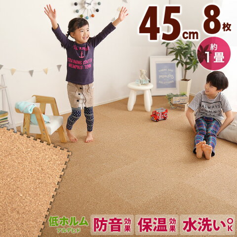 サイドパーツ付き!ジョイントコルクマット 8枚セット(大判45cm)安心の低ホルムアルデヒド、防音、保温【Etle-エーテル-】【OG】