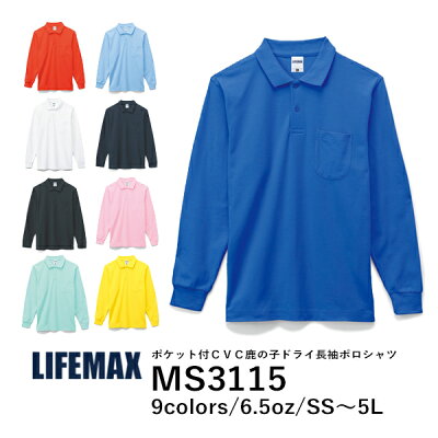 無地 長袖 ポロシャツメンズ レディース S M L LL 3L 4L 5L 黒 ブラック ネイビー 白 ホワイト オレンジ ピンク 黄色 イエロー 緑 グリーン 青 ブルー サックス MS3115 LIFEMAX ポケット付CVC鹿の子ドライ長袖ポロシャツ (B)
