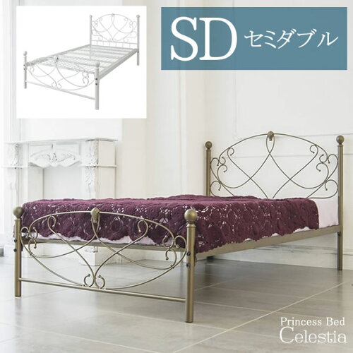 ベッドフレーム セミダブルサイズ セミダブルベッド アイアンベッド セレスティア メッシュタイプ 収納 ゴールド/ホワイト 2色対応 高級感/清潔感/姫系/かわいい/華やか スチールベッド ロートアイアン SDサイズ Celestiaシリーズ GD/WH BSK-906SD