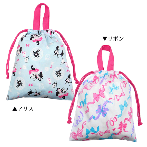 持ち手の付いた大きめの巾着袋は様々なシーンで大活躍です。